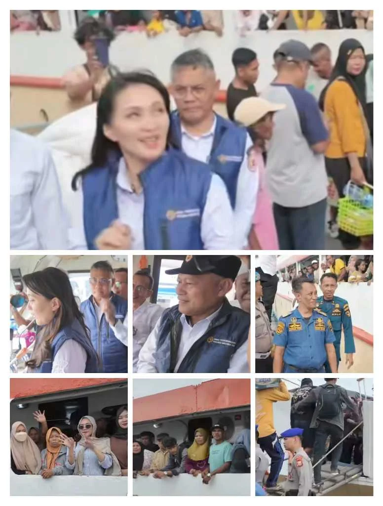 KABARINDONESIANEWS.COM – Gubernur Provinsi Maluku Utara, Sherly Tjoanda Laos, bersama Wakil Gubernur, Sarbin Sehe, memantau langsung pelepasan penumpang kapal Agil Pratama rute Sanana–Taliabu di Pelabuhan Ahmad Yani, Rabu (24/12/2025).
