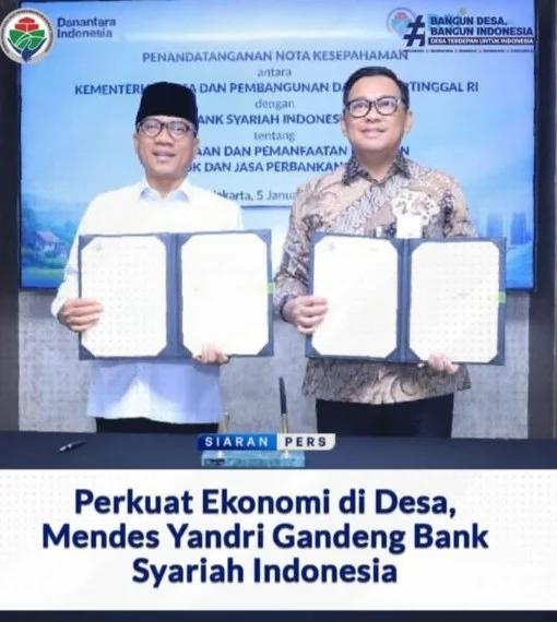 KABARINDONESIANEWS.COM – Kementerian Desa dan Pembangunan Daerah Tertinggal (Kemendes PDT) menandatangani nota kesepahaman (MoU) dengan Bank Syariah Indonesia (BSI) sebagai langkah strategis untuk memperkuat aktivitas dan kelembagaan ekonomi desa, Selasa (6/1/2026).